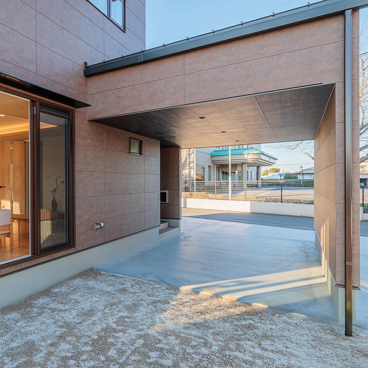 ■ガレージポーチが生む、ゆとりある動線 雨の日も濡れることなく、車から室内へスムーズに。日々の動作を美しく整えながら、快適でストレスのない暮らしを実現します。