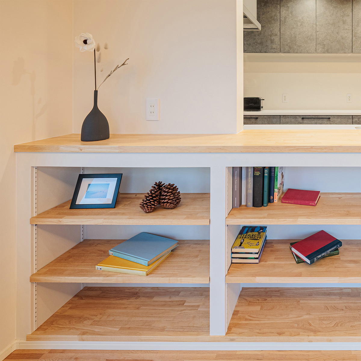 ■空間に寄り添う、造作の工夫 既製品では叶えにくい、空間との一体感。機能性と意匠性を兼ね備えた設計です。